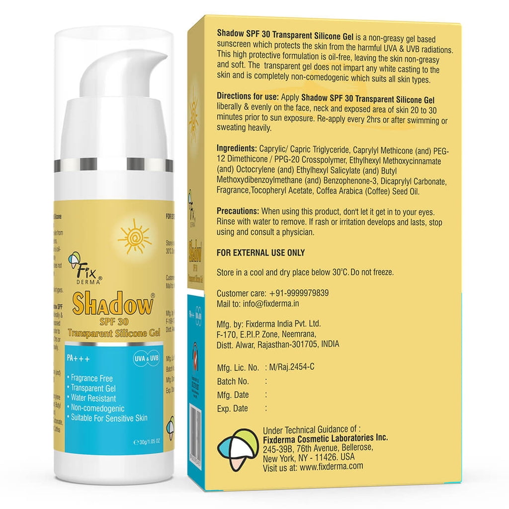 Fixderma Shadow Sunscreen Spf 30 Transparent Silicone Gel Ideal For Acne Prone Skin 1 05 Fl Oz Walmart Com